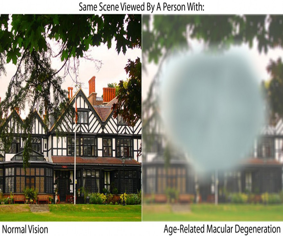 Central vision is used to see what is directly in front of you. In AMD, your central vision becomes increasingly blurred, leading to symptoms such as: