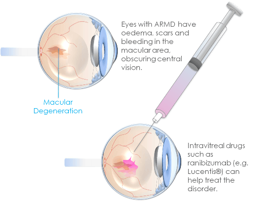 Wet AMD can be treated with a type of medication called anti-VEGF medication, which aims to stop your vision getting worse by helping prevent further blood vessels developing. In some cases laser surgery can also be used to destroy abnormal blood vessels. Early diagnosis and treatment of wet AMD is essential in reducing the risk of severe loss of vision.